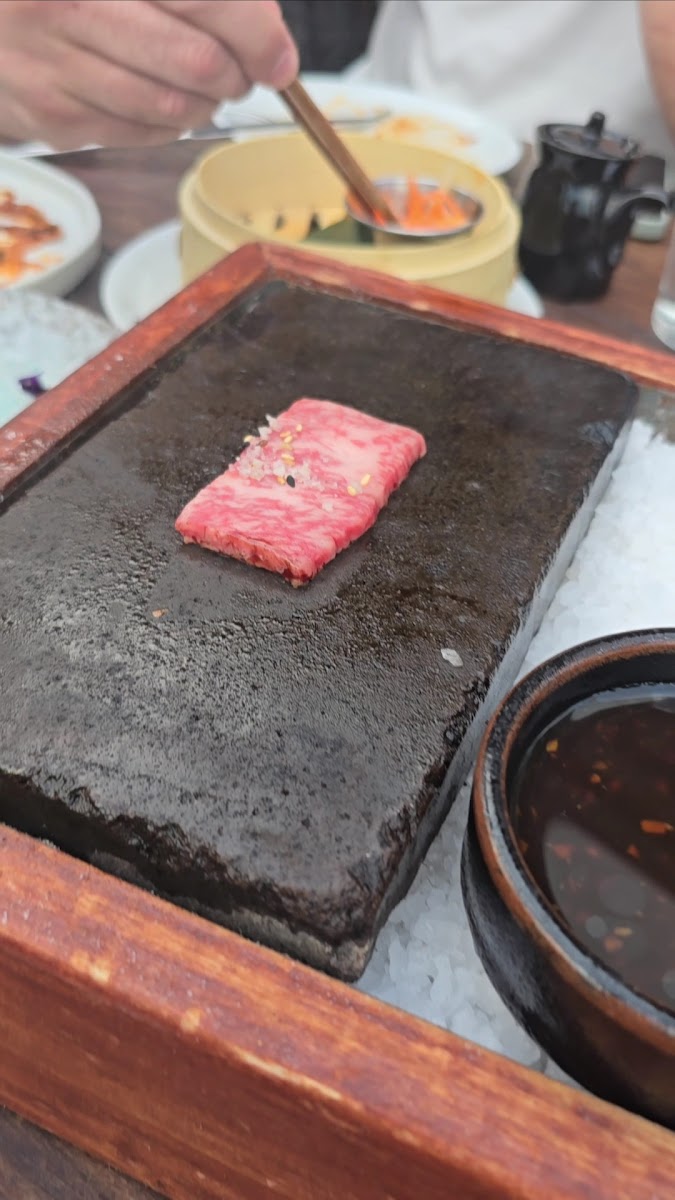 Stopped by early after a shopping trip to Melrose and Fairfax. Didn't have a reservation but waited in line for them to open and decided to catch bar seating. To our surprise, we were able to catch a table for two at 530 pm on a Saturday. IYKYK it's hard to do Drinks refreshing $$$ Food was tasty but in small portions. We ordered the wagyu edamame and a roll. We were in n out before the craziness, there's valet and several other parking locations. Don't recommend you parking on the St. This location is permit St parking only. At the time the ambiance was just right not too loud. Our server was informative and knowledgable.