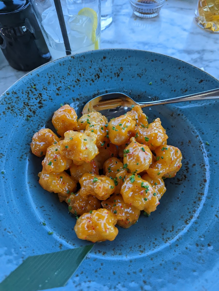 I've been to Catch LA about 6 times now and it has yet to disappoint! There was one time when I got the grilled sea bass and wasn't impressed, but part of that was not being able to have the sauce due to dietary restrictions. This time, I was too excited to eat and didn't take many pictures. But I tried the king oyster mushroom sushi--so good! My salad, salmon and shrimp were amazing, per usual! Everyone in our very large group loved their food. The ambiance and vibes are also part of the experience here. It's one of those places where you dress up for a night out and a fancy dinner. The environment is great for photos. The service is always excellent here, at least from my experience.